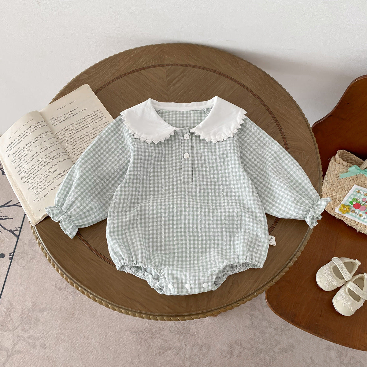 Long Sleeve Checkered Doll Collar Romper