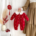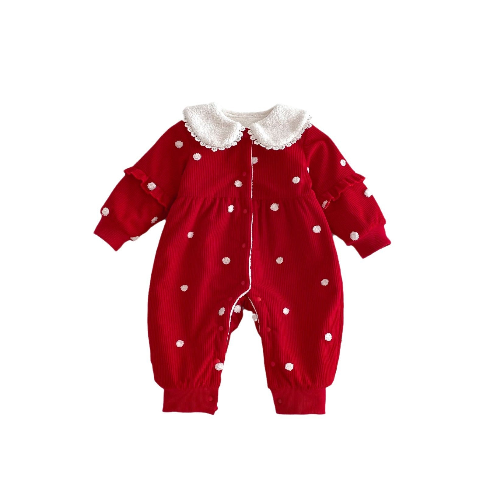 Red Polka Fleece-lined Baby Thickened Jumpsuit